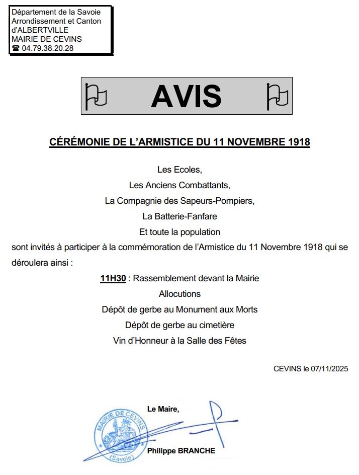 La commune de Cevins est située en Basse Tarentaise et se situe sur la butte rocheuse au débouché du défilé de Feissons-sur-Isère. Elle constitue ainsi une porte naturelle à l'extrémité de la plaine de La Bâthie, entre la vallée d'Albertville et la Tarentaise. Elle fait partie de la Communauté d'Agglomération Arlysère depuis le 1er janvier 2017. Sa population est d'environ 780 habitants.